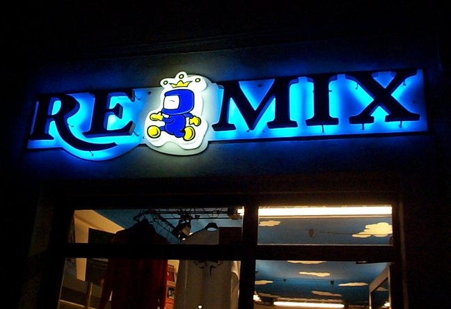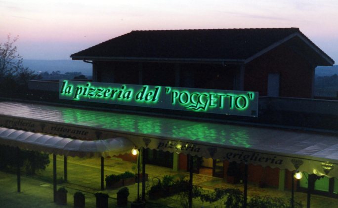 lettere scatolate acriliche trasparenti e non, di vari colori con neon